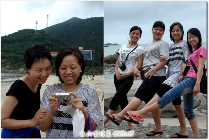 ???!今天的海水比起昨天來清澈許多。繼續(xù)赤腳漫步;登高觀音山,放眼寮望;在玉女石像上與她合影一張。就這樣,走著走著,時(shí)針便