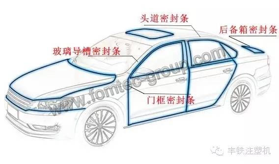 汽車密封條主要用于車門、車窗、車身、天窗、發動機箱和后備箱等部位,具有隔音、防塵、防滲水和減震等功能,它既起到保持和維護車內小環境的作用,又對車內乘員、機電裝置及附屬物品起保護作用。